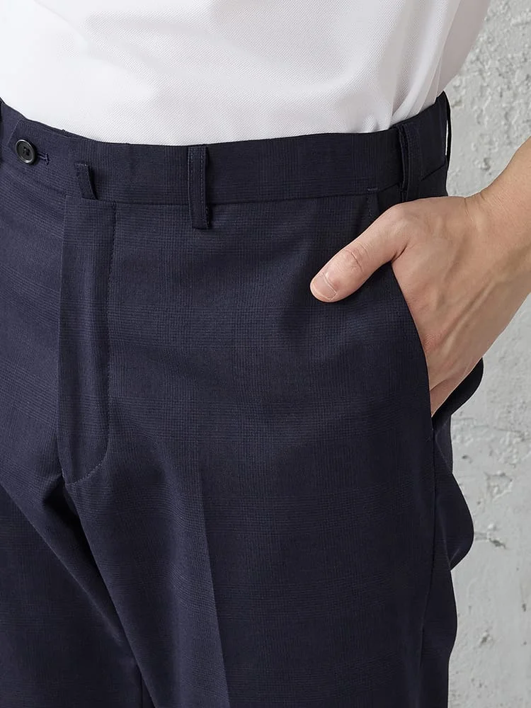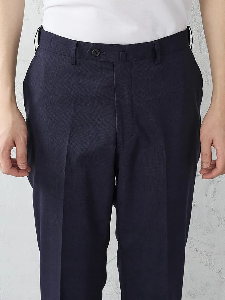 【洗える/ストレッチ】シャドウチェックスラックスネイビー