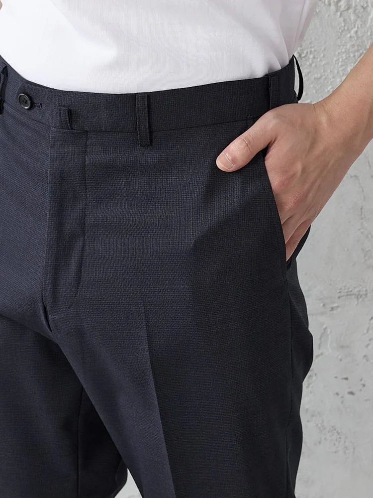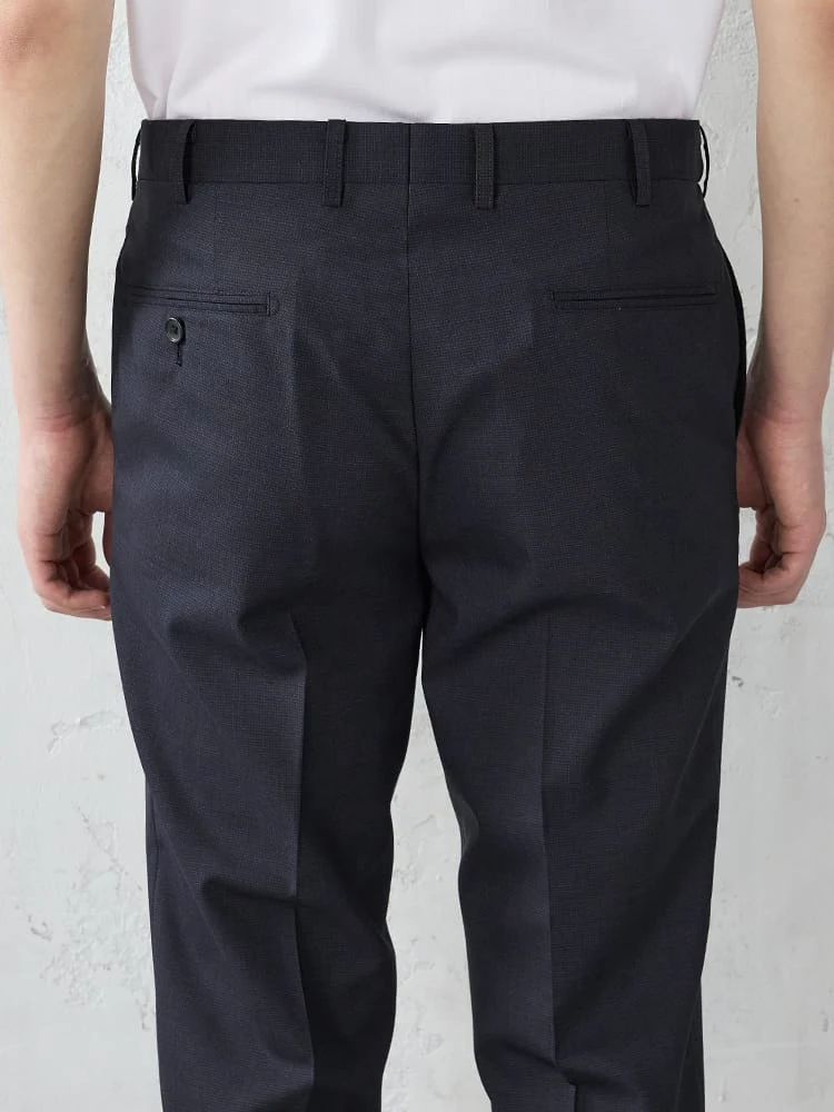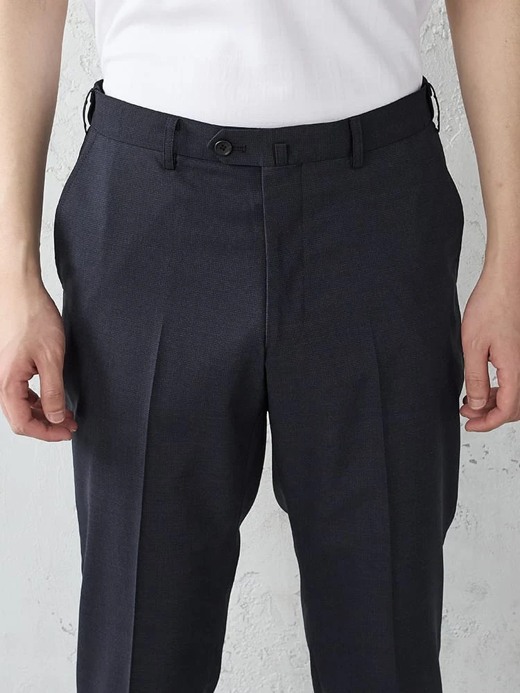 【洗える/ストレッチ】シャドウチェックスラックスネイビー