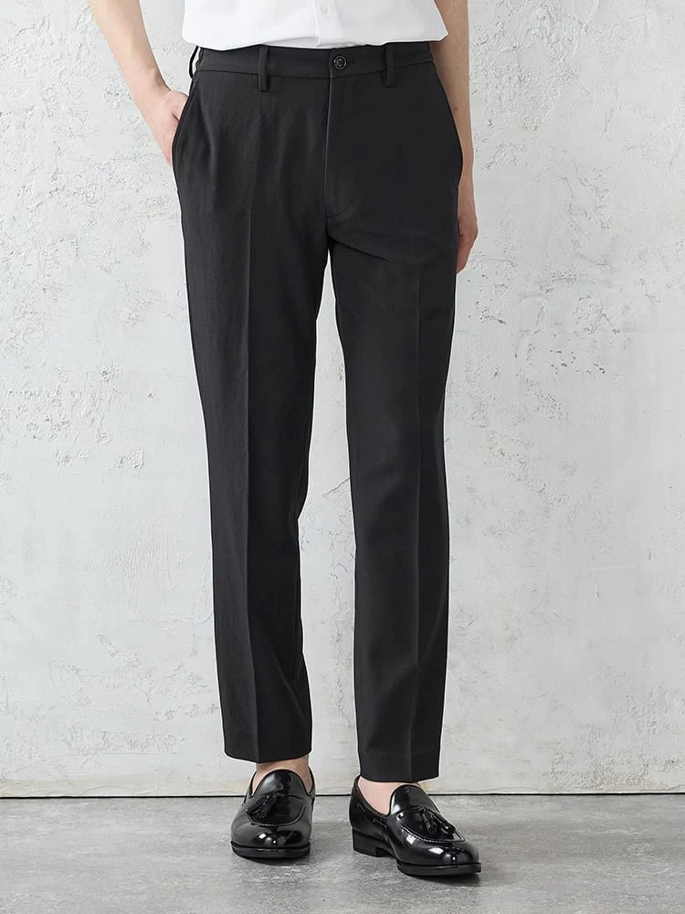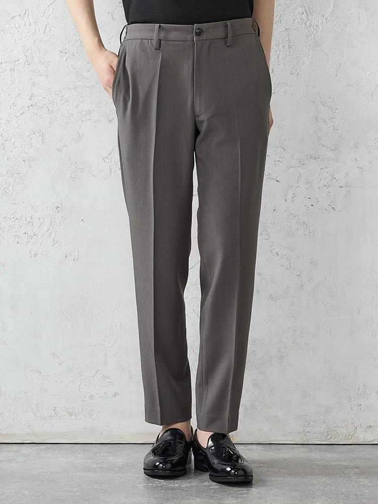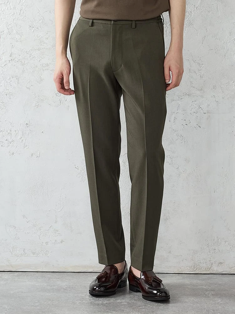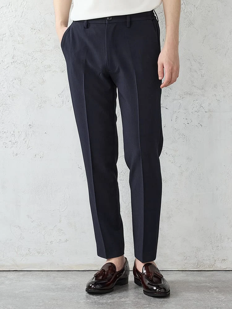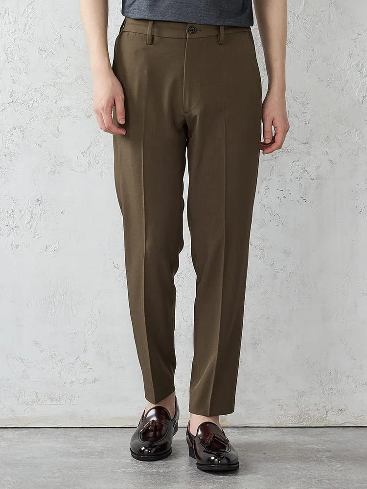 パンツはテーパードシルエットで、スマートな装いに。
