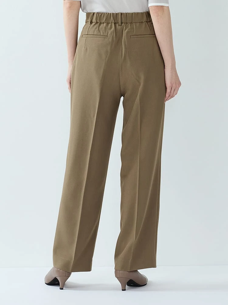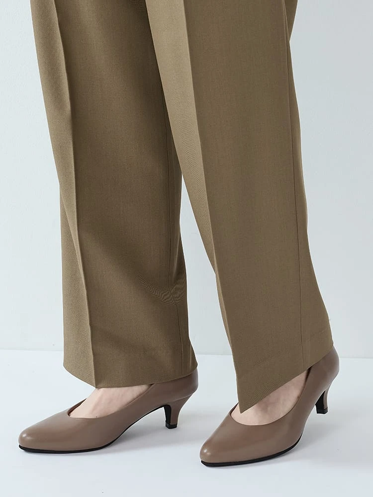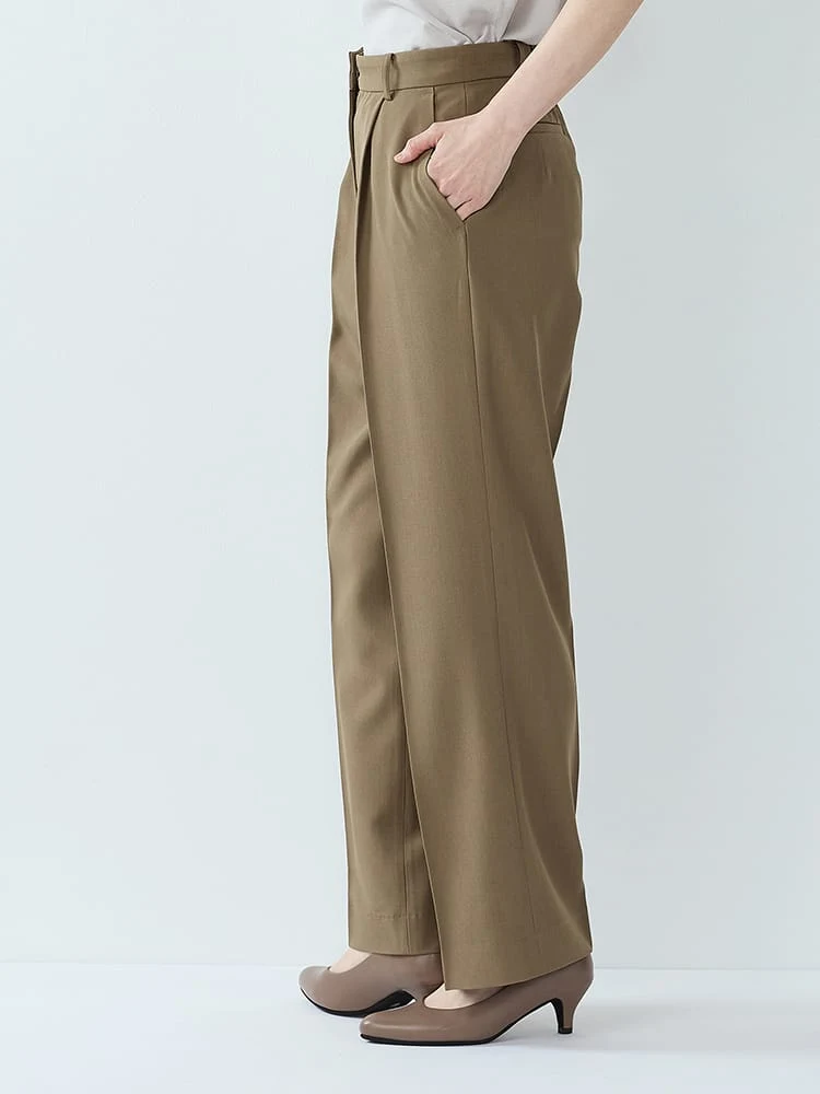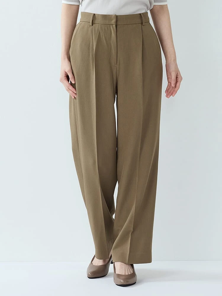 杢調プレーンスーツストレートパンツベージュ/ブラック