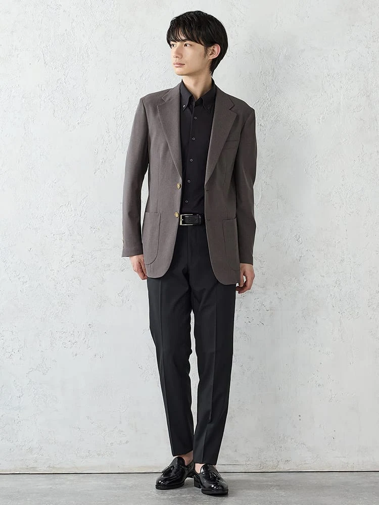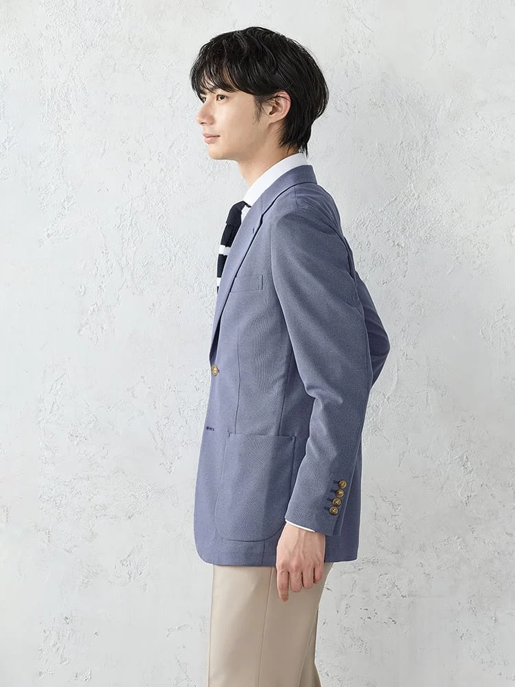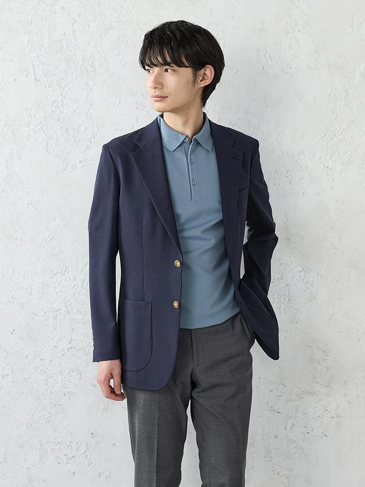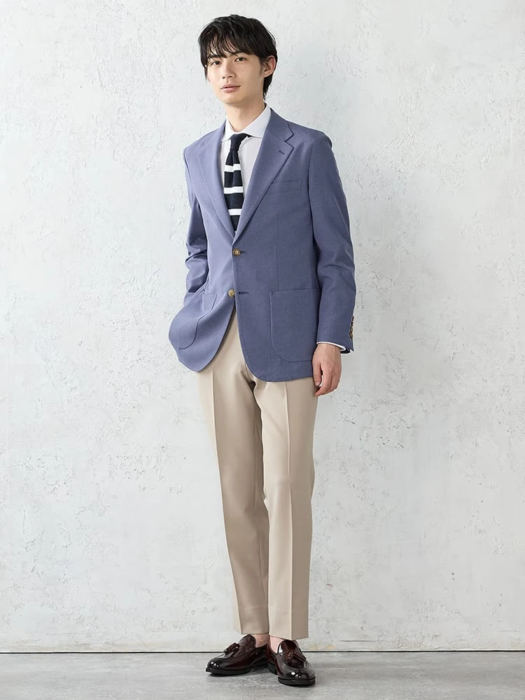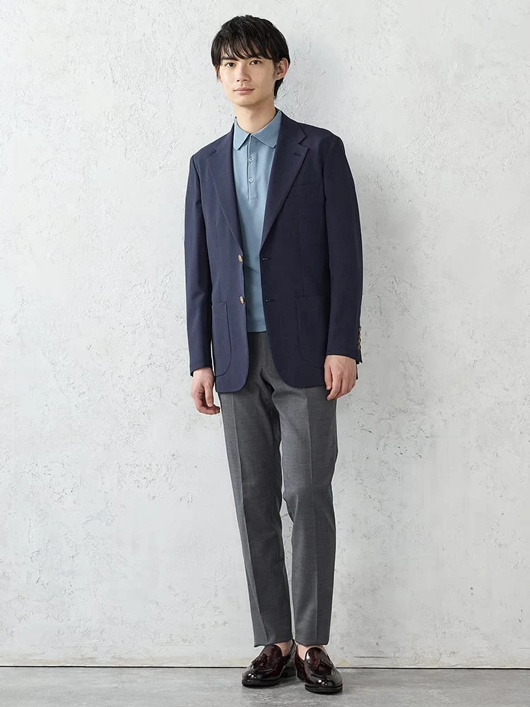 パッチポケットの為、ウールスラックスから、チノパンまで幅広く合わせやすいジャケットです。