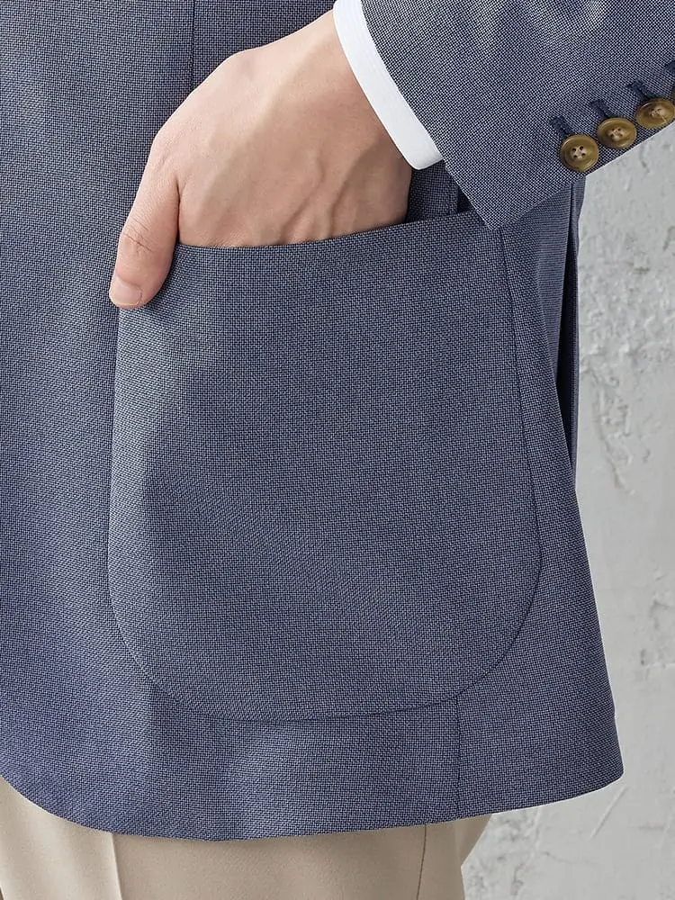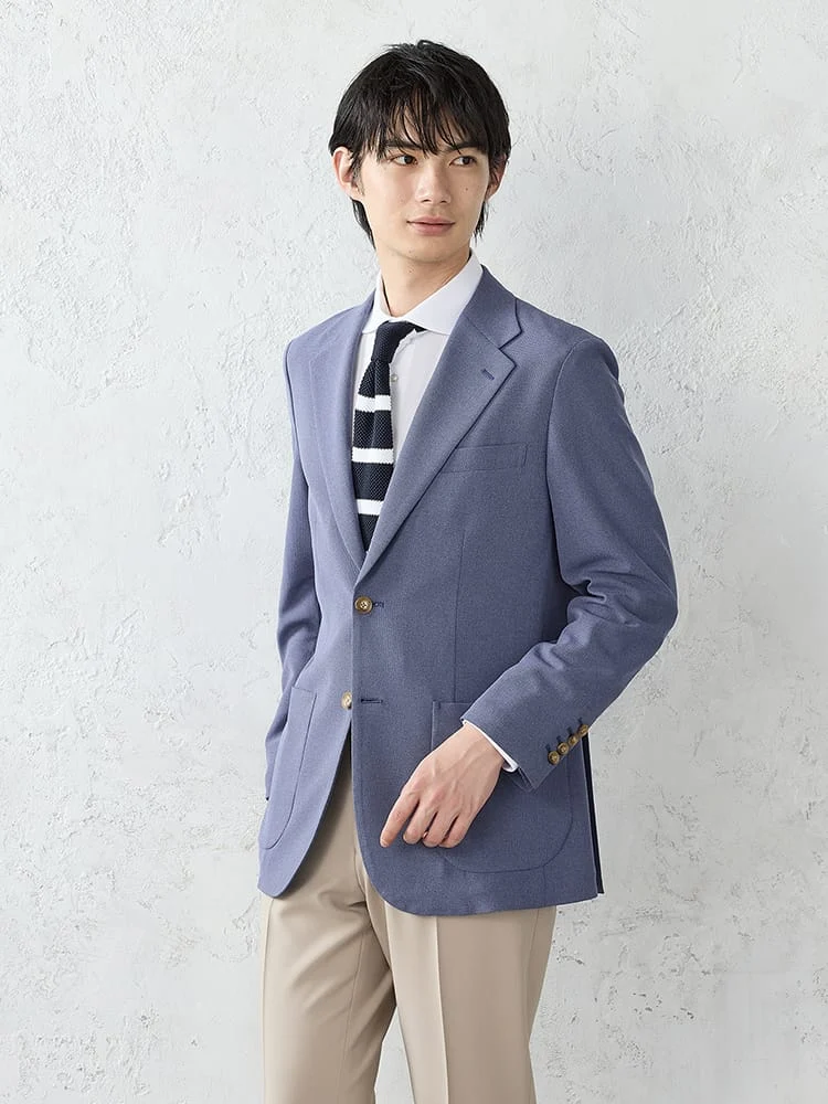【贅沢な大見返しで、パッチポケット付き。ホップサック調で軽量仕立ての本格夏ジャケット。】