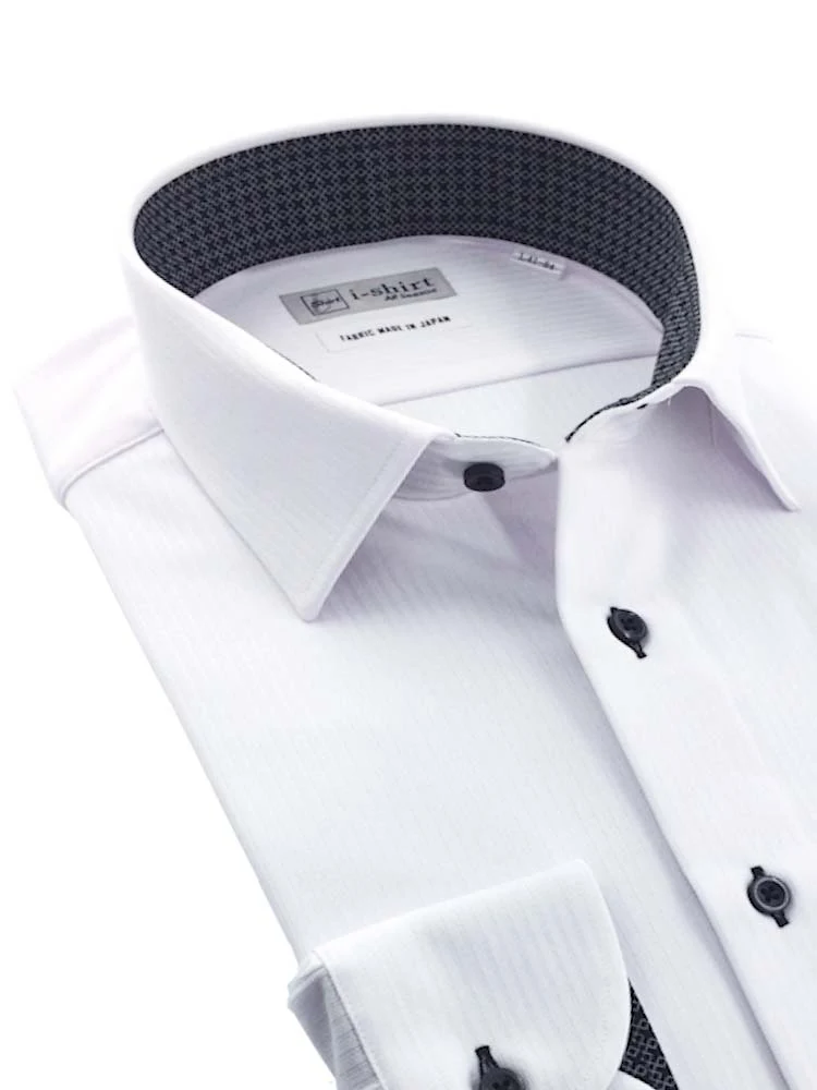 衿とカフス裏を別地で切り替えた、技ありデザインです。