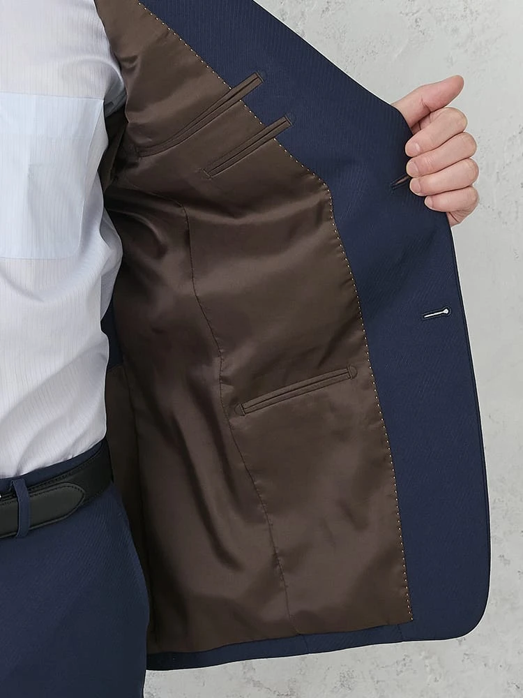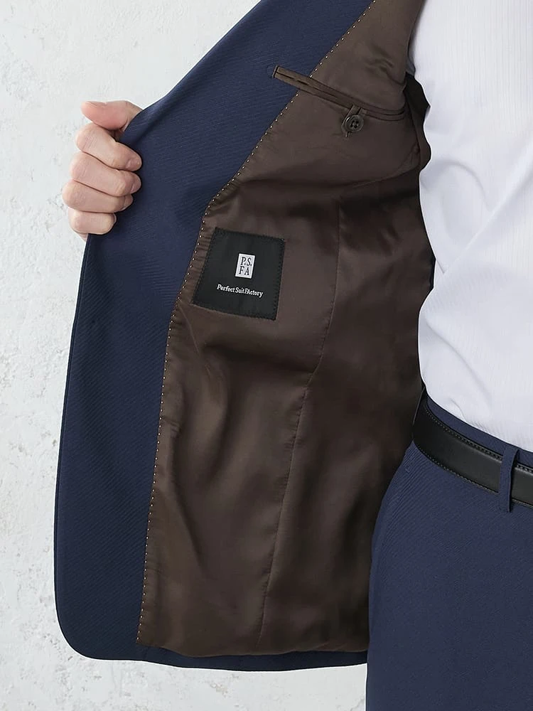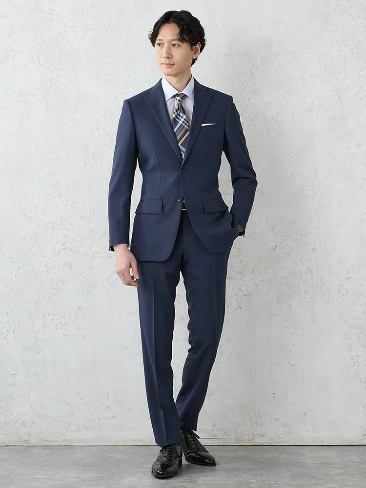 ビジネスシーンで好まれるネイビーのスーツ。