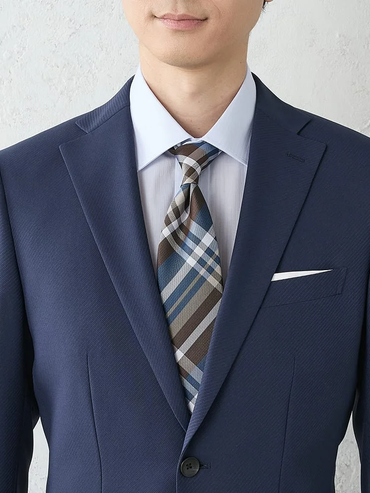 【上下洗える/高通気】WEB限定スーツ4WAYストレッチウィンドペンブラウン
