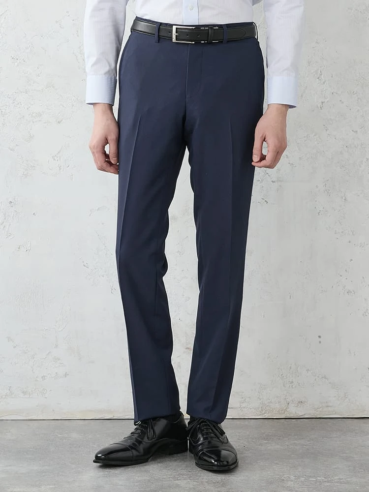パンツはノータックのすっきりとしたシルエットです。