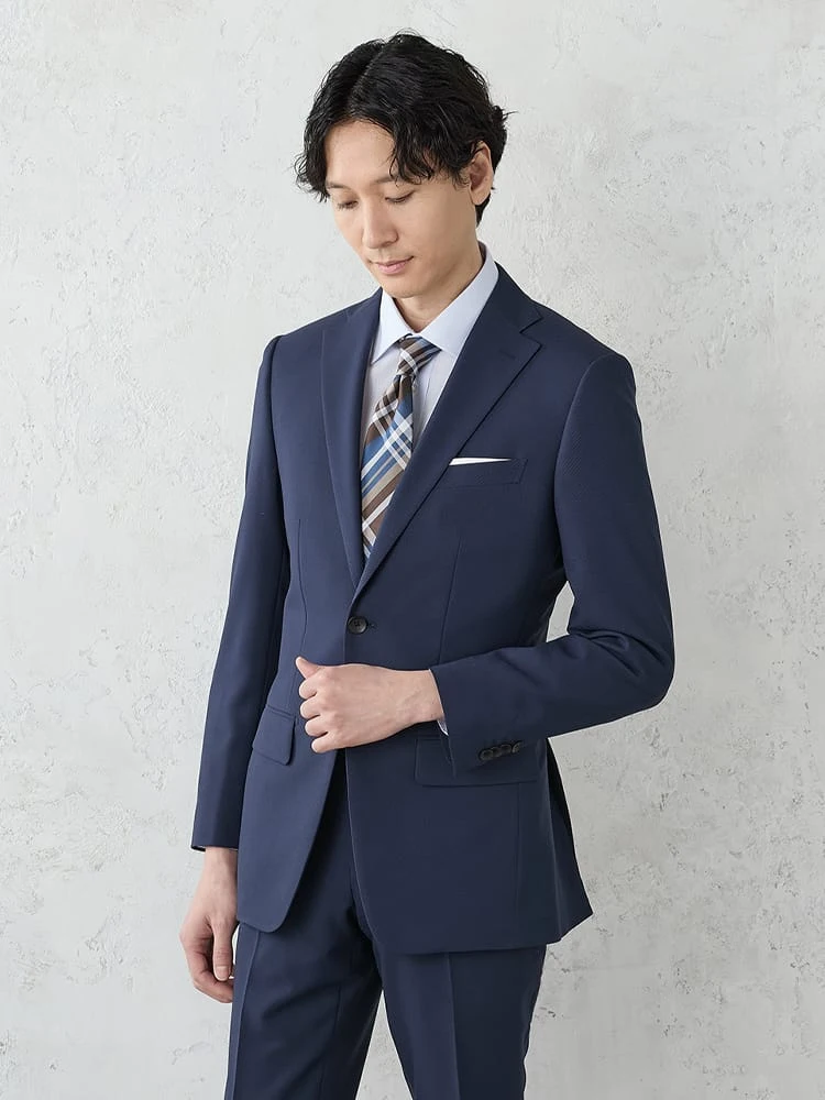 《WASHSUIT》WEB限定スーツ【トリコットメッシュ】チェック柄ネイビー