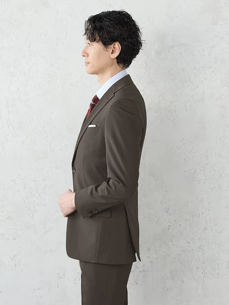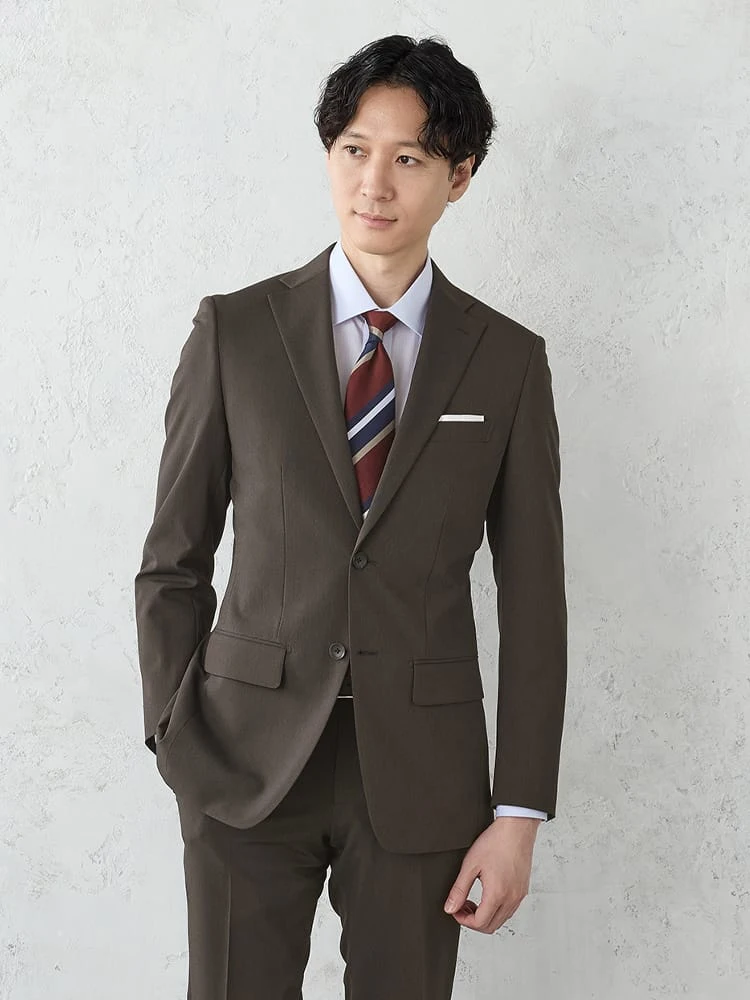 【上下洗える/高通気】WEB限定スーツ4WAYストレッチウィンドペンブラウン