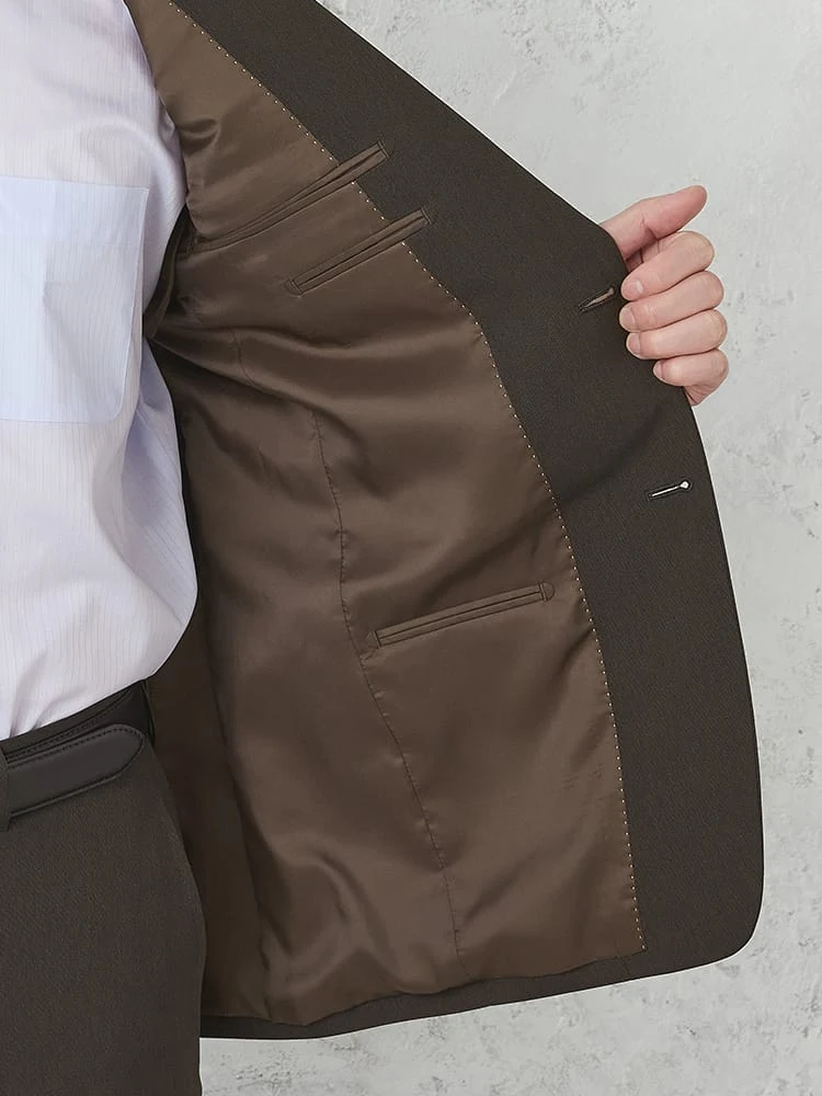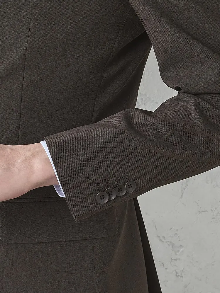 着こなしやすくも個性を感じる、ブラウン×ピンヘッド柄のスーツ。