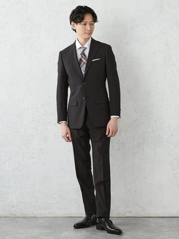 【上下洗える/高通気】WEB限定スーツ4WAYストレッチウィンドペンブラウン