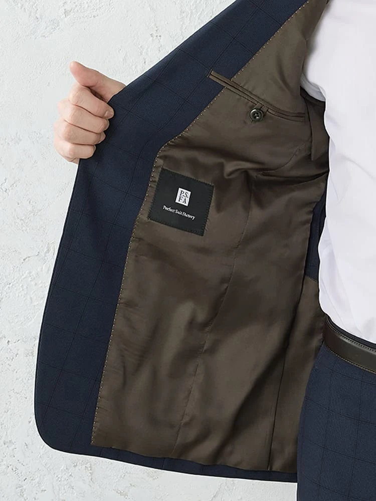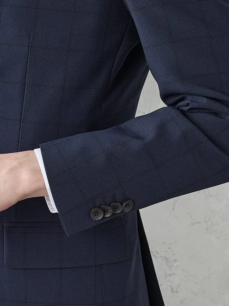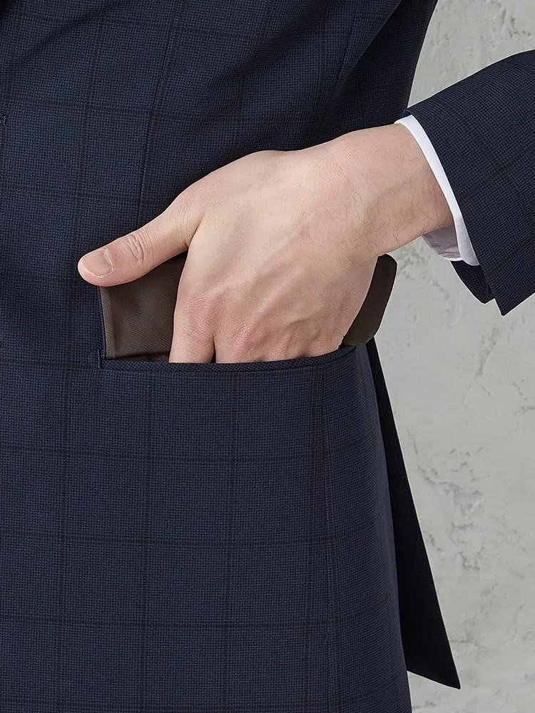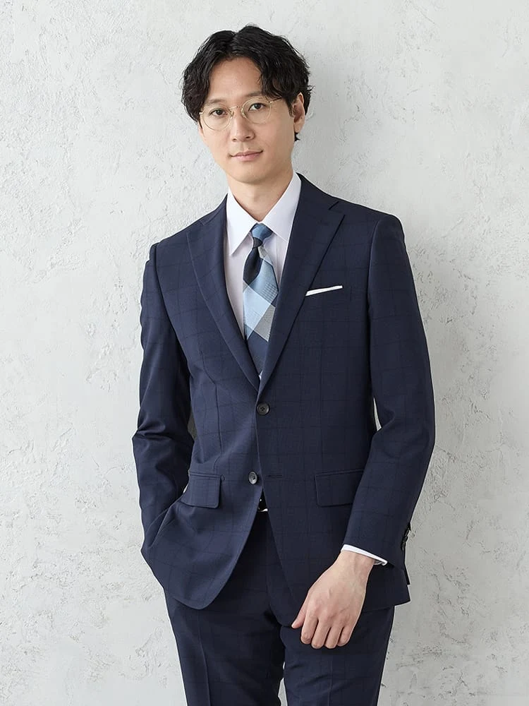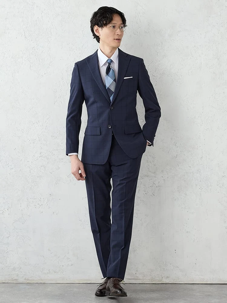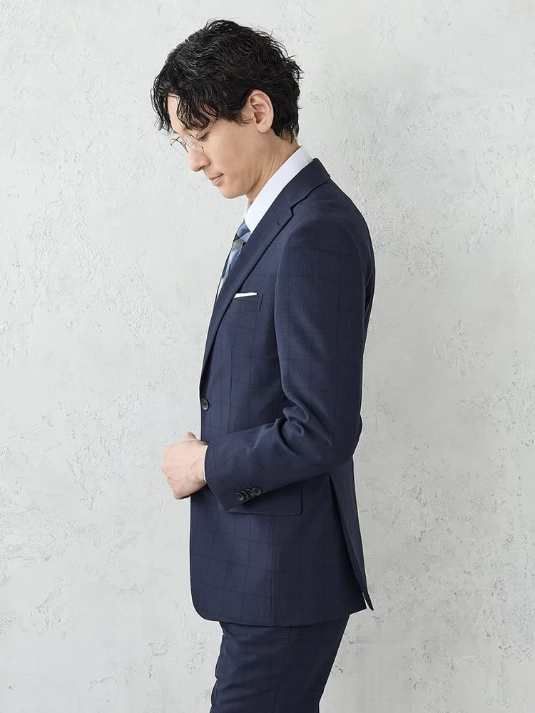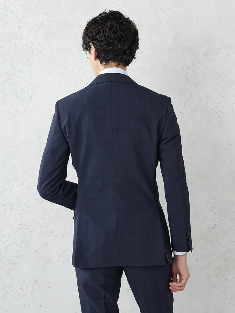 《WASH SUIT》WEB限定スーツ【トリコットメッシュ】チェック柄 ネイビー