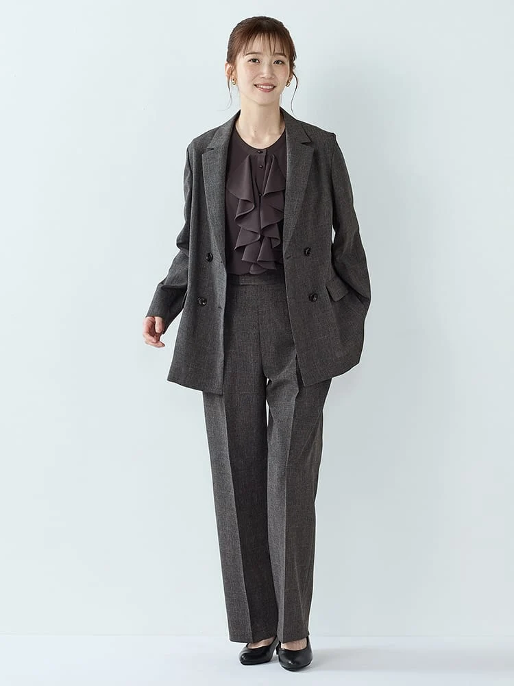 グレーのピンチェック柄で大人っぽくエレガントにまとめています。