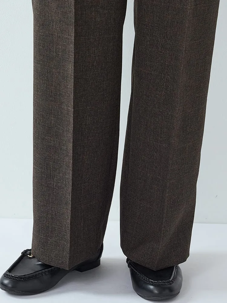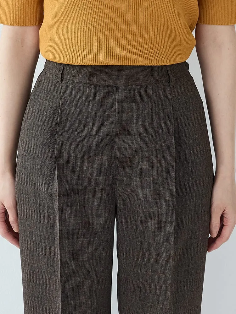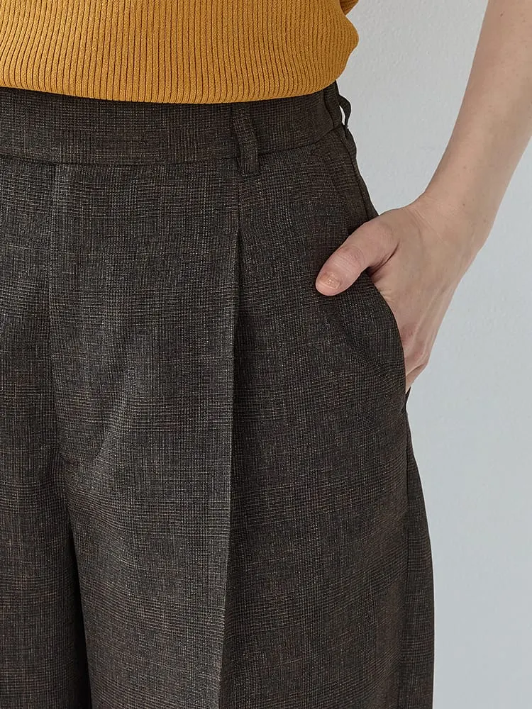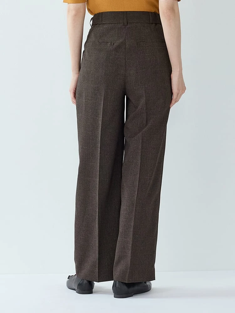 Mywardrobeグレンチェックスーツタックワイドパンツブラウン/ネイビー