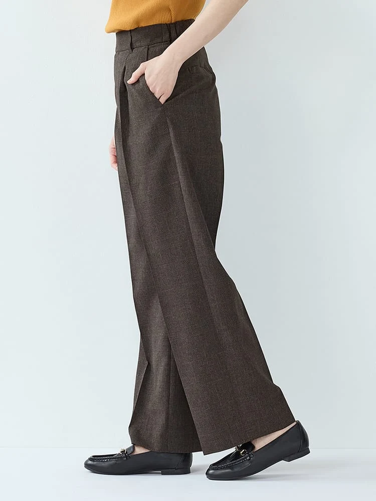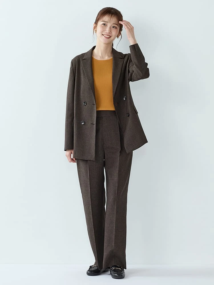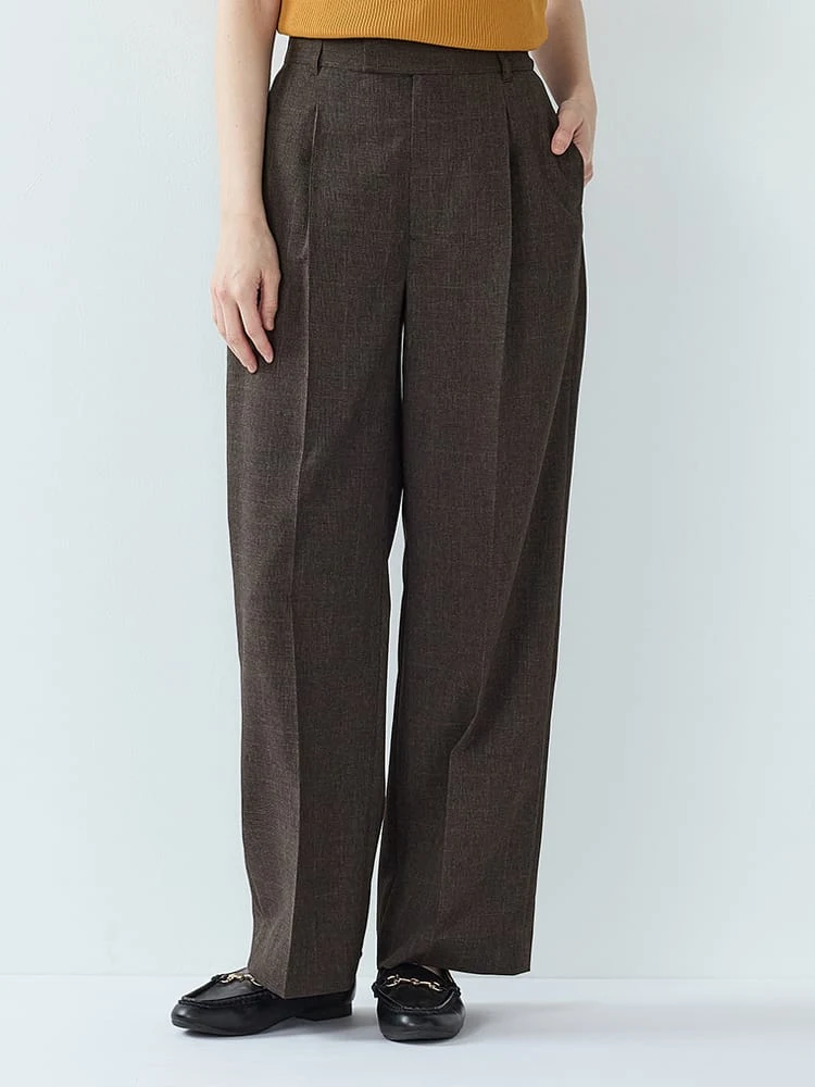 杢調プレーンスーツストレートパンツベージュ/ブラック