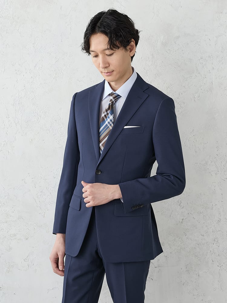 従来の「スーツは窮屈で動きにくい」というイメージを解消するため、WEB限定スーツは4WAYストレッチ生地を使用しています。
