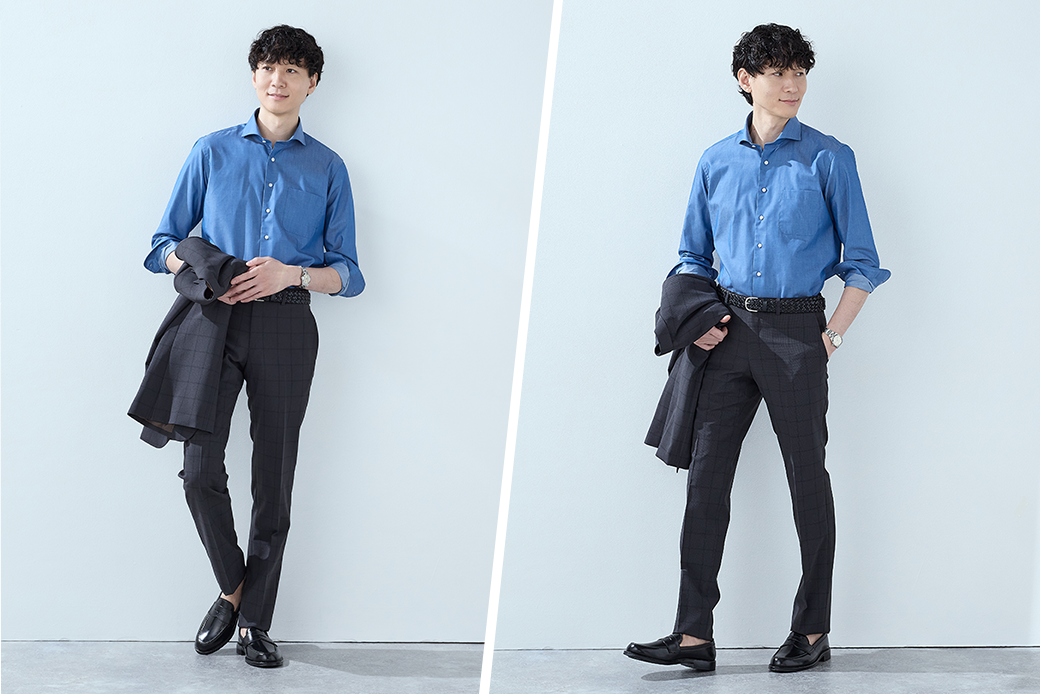 さらに、高い防シワ性能とセンタープレス加工でイージーケアを実現しました。
